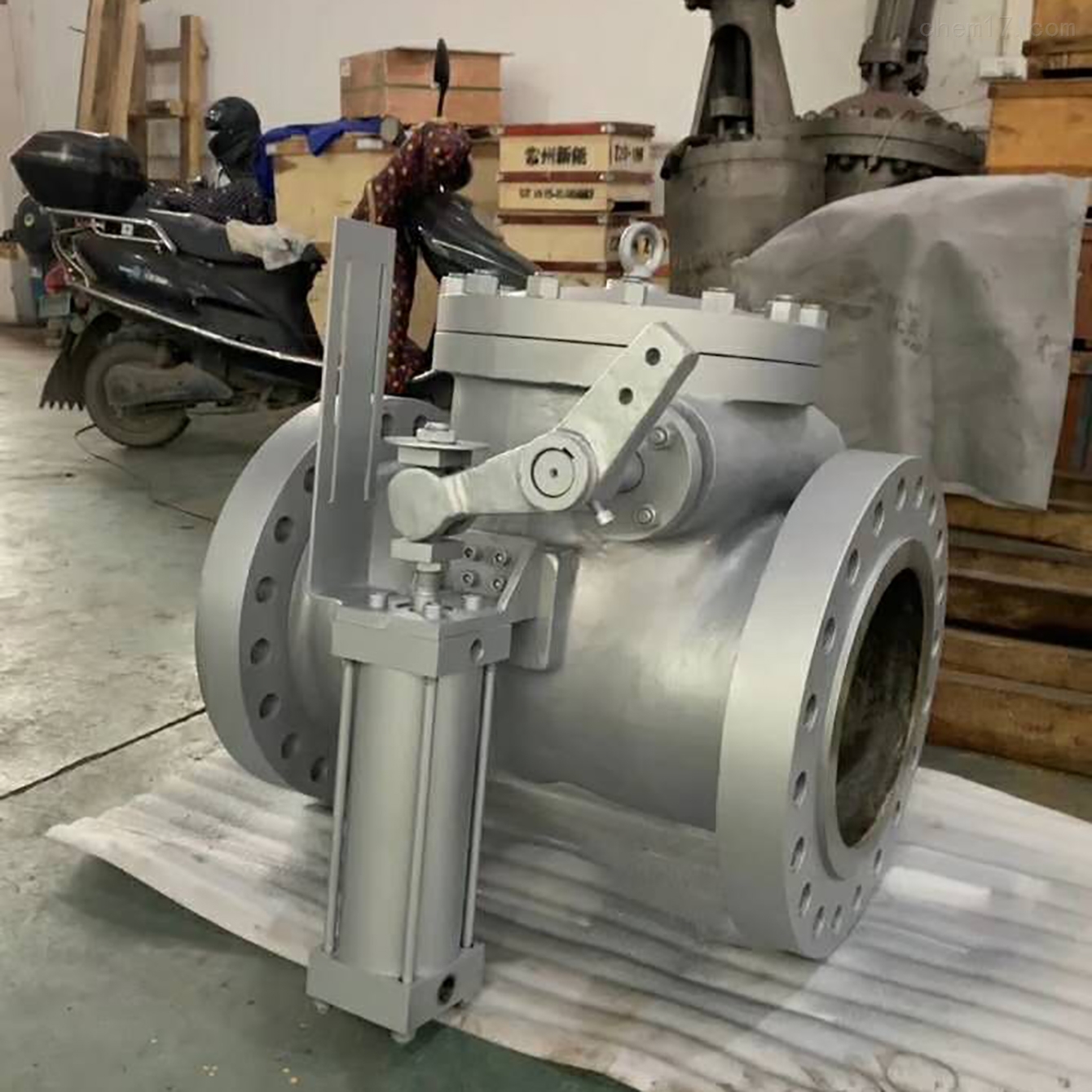 2、当介质正向流动时,气缸下腔进气,与重锤共同作用,使阀瓣平衡地处在全开位置。当介质反向流动时,气缸活塞下腔